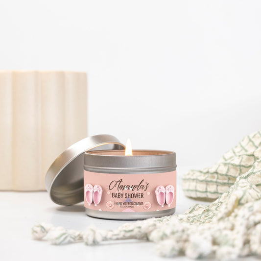 Personalized Baby Girl Shoes Baby Shower Candle Favors - Tin 4oz