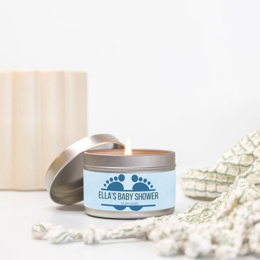 Personalized Baby Feet Baby Shower Candle Favors - Tin 4oz