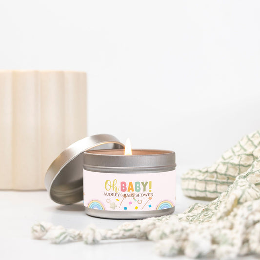 Personalized Rainbow Themed Oh Baby Shower Candle Favors - Tin 4oz