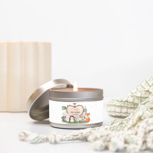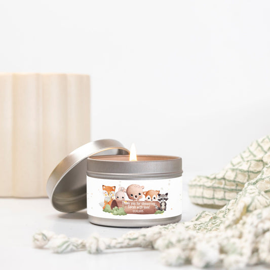 Personalized Woodland Animals Baby Shower Favor Candles - Tin 4oz