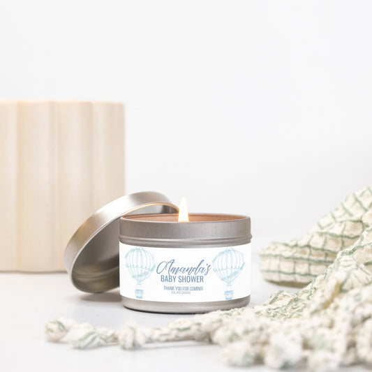 Personalized Hot Air Balloon Baby Shower Candle Favors - Tin 4oz