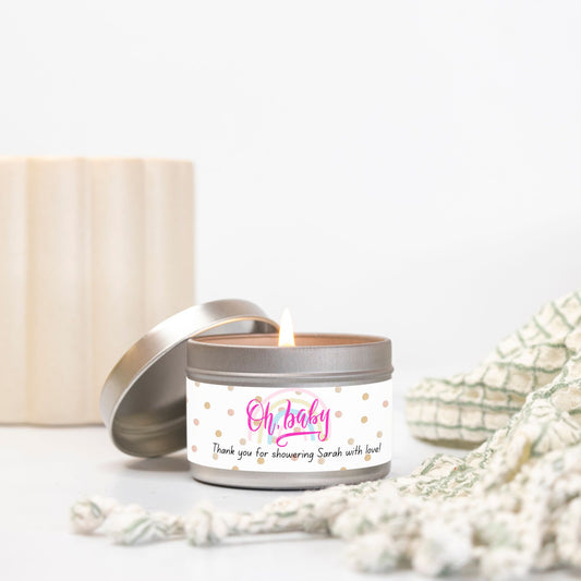 Personalized Oh Baby Shower Candle Favors - Tin 4oz