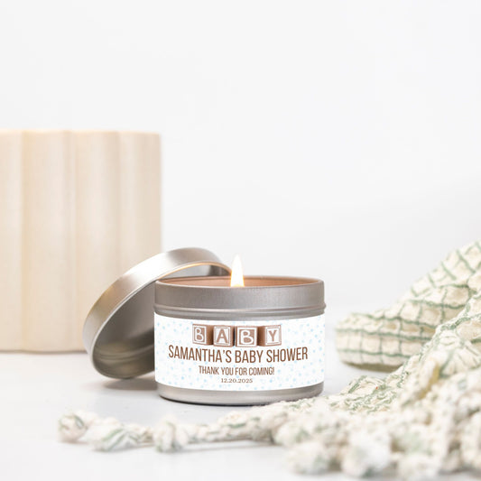 Personalized Baby Shower Candle Favors - Tin 4oz