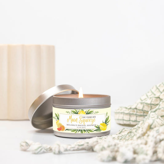 Personalized Lemon Themed Bridal Shower Candle Favor - Tin 4oz