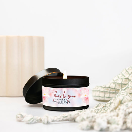 Personalized Spring Cherry Blossom Themed Bridal Shower Candle Favor - Tin 4oz