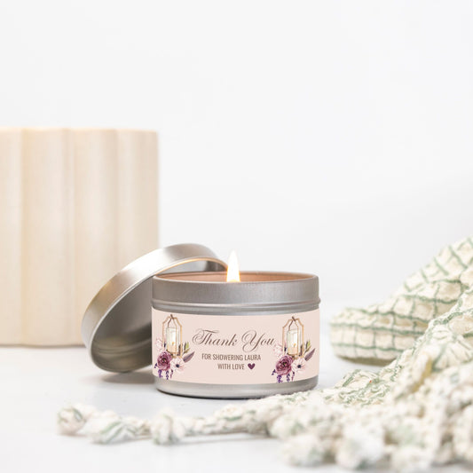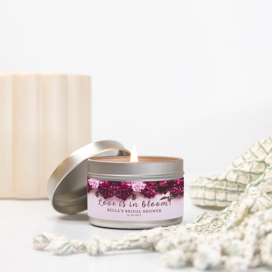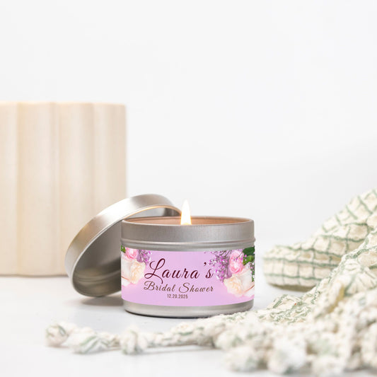 Personalized Floral Themed Bridal Shower Candle Favor - Tin 4oz