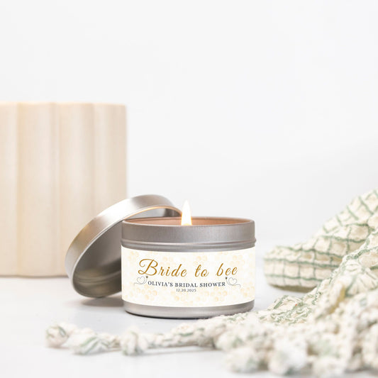 Personalized Bee Themed Bridal Shower Candle Favor - Tin 4oz