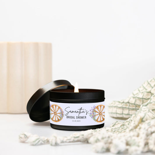 Personalized Rustic Themed Bridal Shower Candle Floral - Tin 4oz