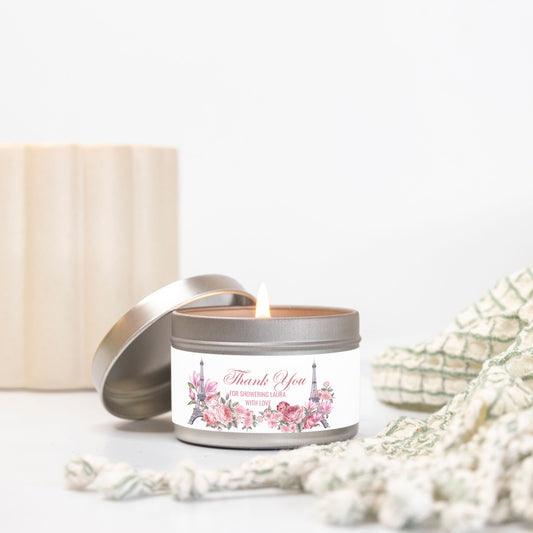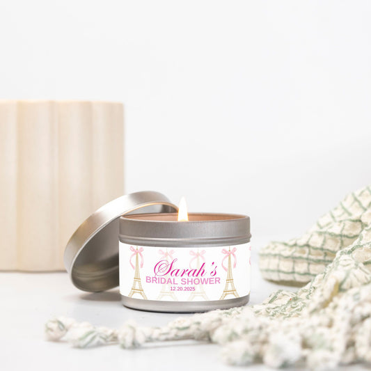 Personalized Eiffel Tower French Themed Bridal Shower Candle Favor - Tin 4oz