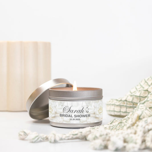 Personalized Creamy Rose Bridal Shower Favor Candle Tin 4oz