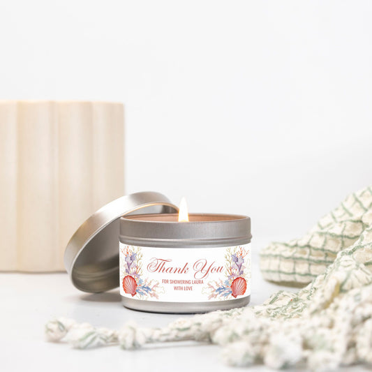 Personalized Coral Beach Themed Bridal Shower Candle Favor - Tin 4oz