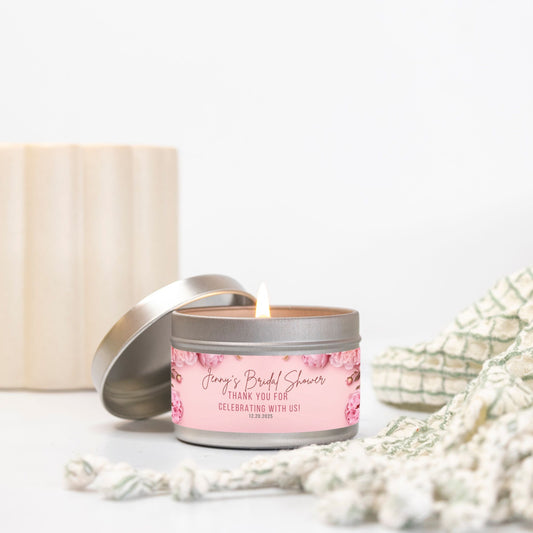 Personalized Pink Peony Bridal Shower Candle Favor - Tin 4oz
