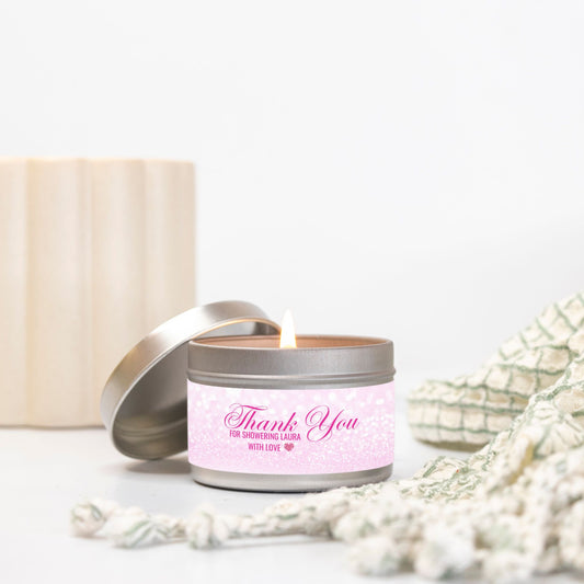 Personalized Pink Faux Glitter Bridal Shower Candle Favor - Tin 4oz