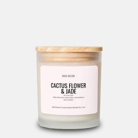 Cactus Flower & Jade Candle in Frosted Glass Jar (Hand Poured 11 oz)