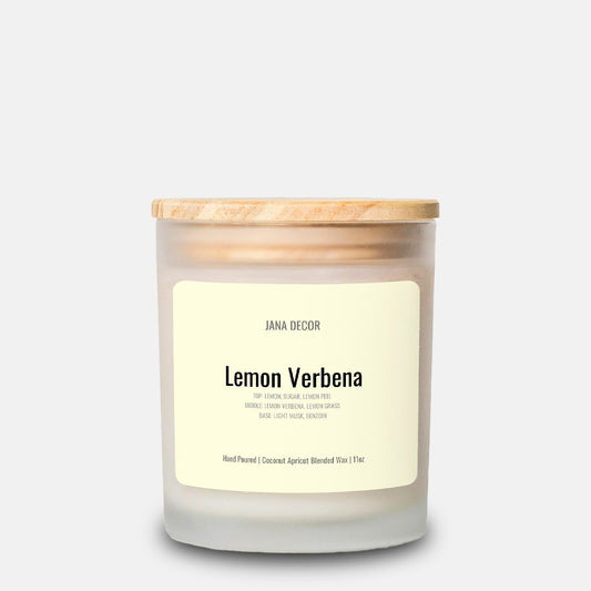 Lemon Verbena Candle in Frosted Glass Jar (Hand Poured 11 oz)