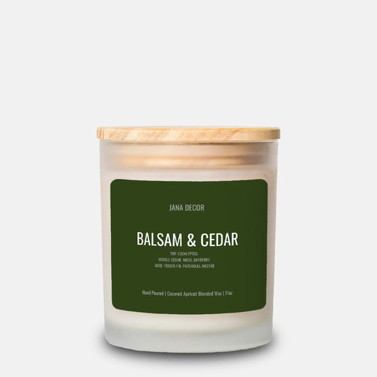 Balsam and Cedar Candle in Frosted Glass Jar (Hand Poured 11 oz)