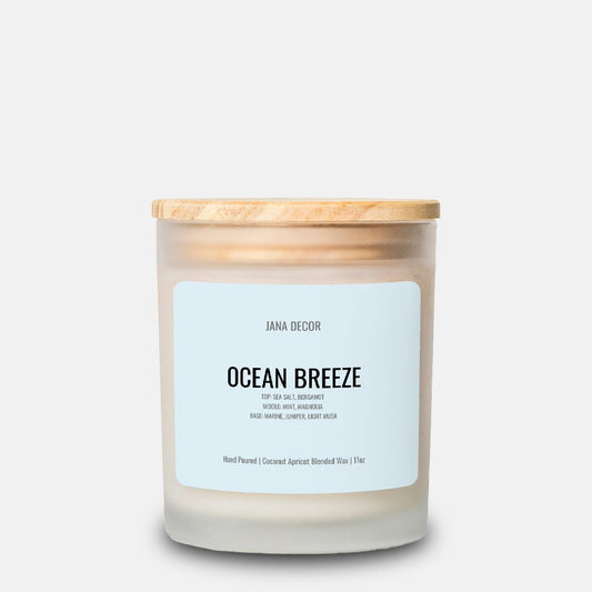 Ocean Breeze Candle in Frosted Glass Jar (Hand Poured 11 oz)