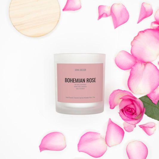 Bohemian Rose Candle in Frosted Glass Jar (Hand Poured 11 oz)
