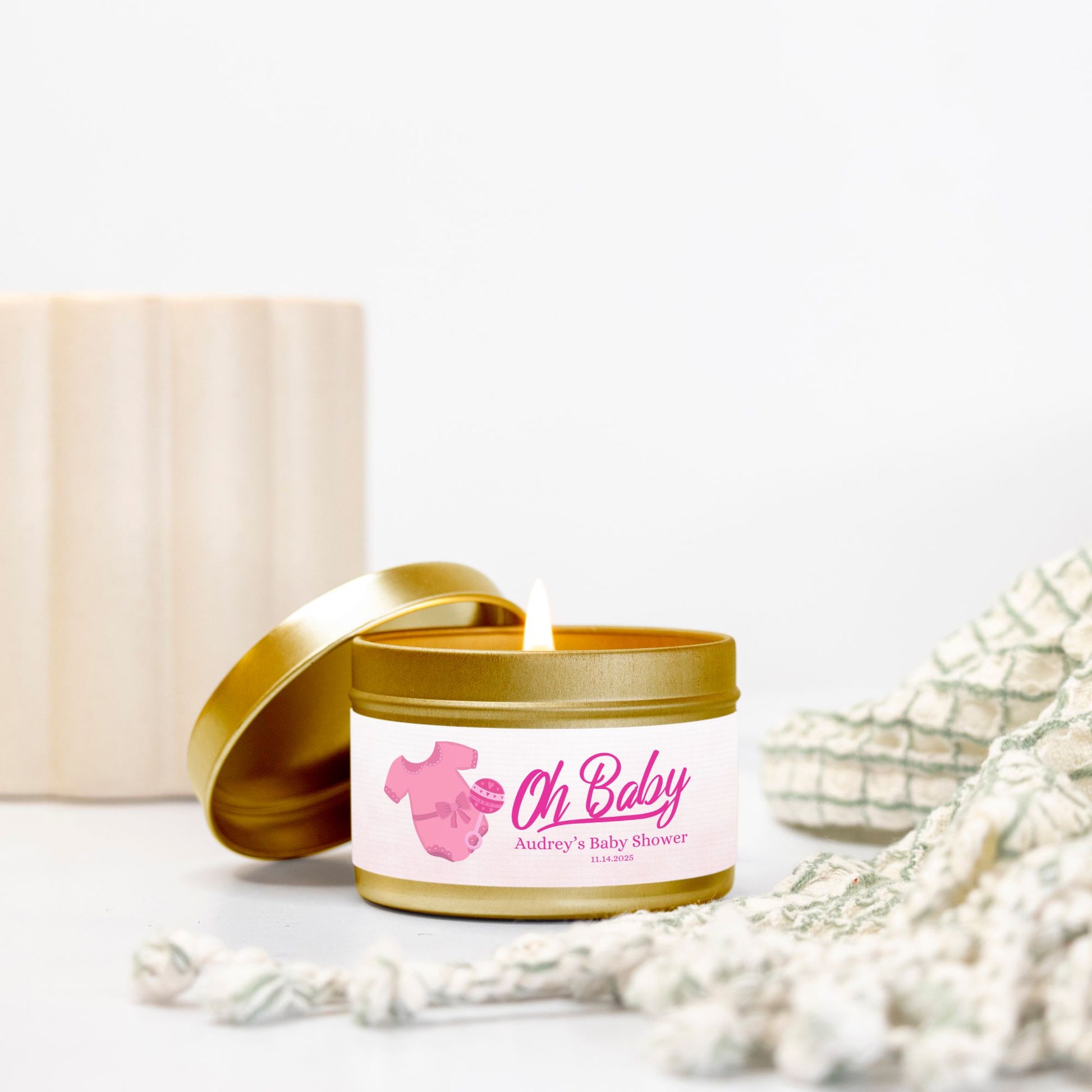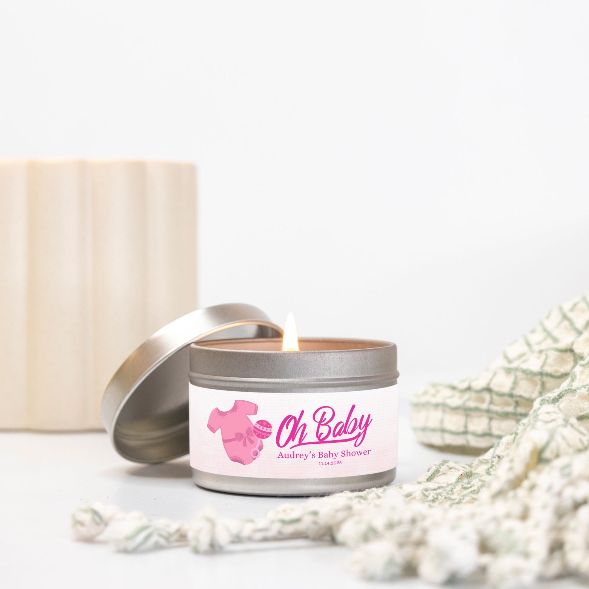 Personalized Oh Baby Shower Candle Favors - Tin 4oz
