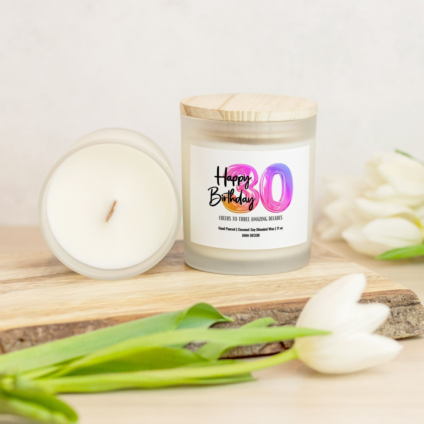 Happy 30th Birthday Candle - Frosted Glass (Hand Poured 11 oz)